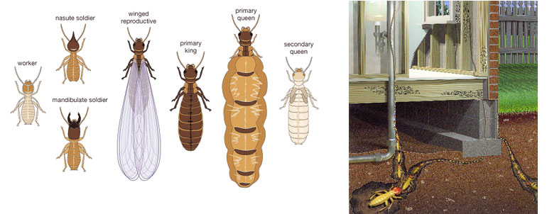 Termite is an insect pest that eats wood and damaged pillars, floors, walls, houses, books and furniture. Termite life group with three caste, king and queen duties is to multiply, workers termite is to look for food to feed coloni and soldiers termite on duty to defend when attacked by ants. King and queen termite is the most perfect termite. Wings of King termite are gray color and they can see with eyes. Queen termite have largh abdomen, yellowish color and can grow up to 4 cm. Task of termite queen is to lays a loteggs. Most of the baby termite become workers, some become soldiers and little become a king and queen. Termites stay inside nest build by mud. Sometimes the nest can built over two meters tall. Termite problem About termite: Termite nest is in the soil as termite like moist, cold and protected places. Termite colony consists of queens, kings, queens regent, regent, worker, and military reconnaissance. If queens died, another employee can be turned into queens but not large in size as the original queens. In certain seasons queens regent will grow wings and fly away to find new areas to make new nests. Mommon type of Pesticide or Poison termite are liquid, usually used in farms. If used indoors, it produces a smell that is not pleasant even harmful to health. Use of liquid poisons from termite attack is only kill the termite that interact poison alone. There are still many more termite in the nest. It is a matter of time the termite attack back. One of the effective way is to hire professional termite exterminator. Price is expensive , can reach a thousand dollars. They will pump termite poison into the soil under your home or use the poison baiting box to kill the entire colony of termites to prevent termites. Latest solution is termite baiting system. Users can do it yourself at home with a reasonable cost. is very easy, just stick TermitesDIY baiting box along the 'mud tunnels or termite road way or termite gathering places (usually under the box, timber and other)